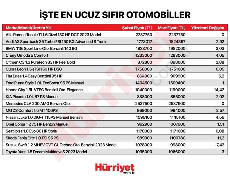 Son dakika… Sıfır otomobil fiyatları arttı! İşte en ucuza satılan araba